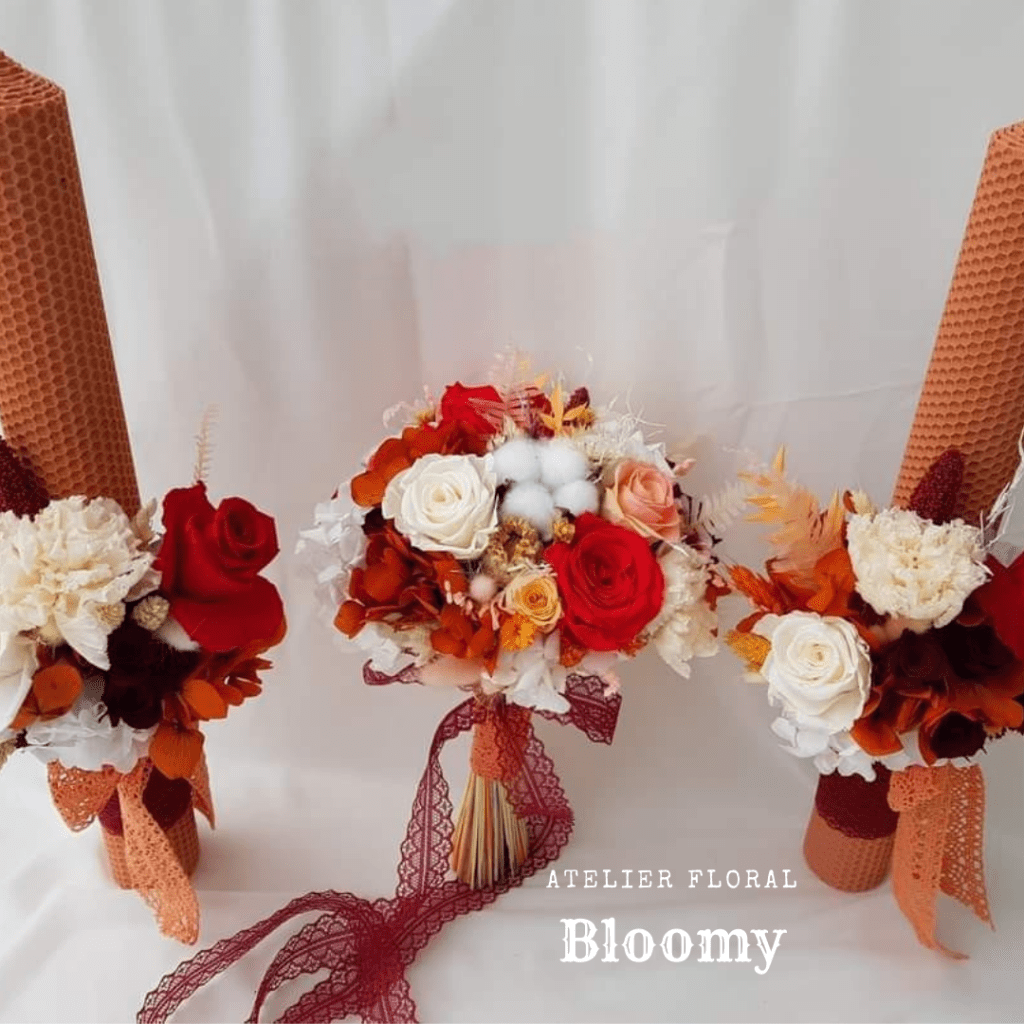 Pachet lumânări și buchete nuntă trandafiri criogenati